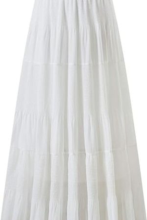 Women Casual Elegant Flowy Handkerchief Long Embroidered Ruffle Skirt