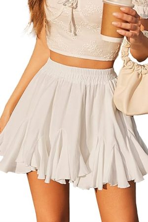 Pleated Skater Skirt Basic Casual High Waisted Ruffles Flared Mini Lingerie Skirts