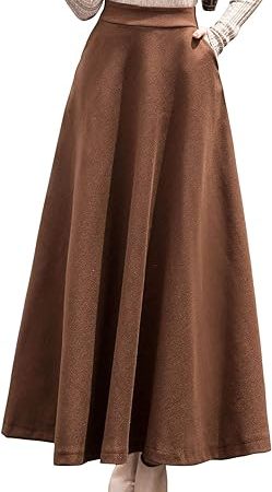 Fall Winter A-Line Swing Pleated Long Maxi Wool Skater Skirt
