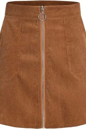 Zipper Front Corduroy Skirt Mini Pencil Skirt