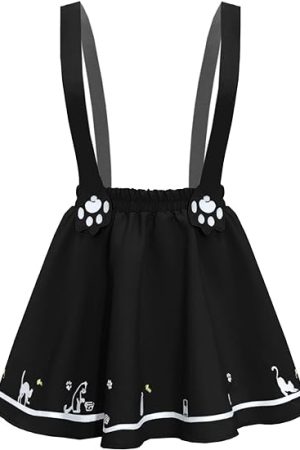 Sweet Cat Paw Embroidery Pleated Mini Skirt with 2 Suspender