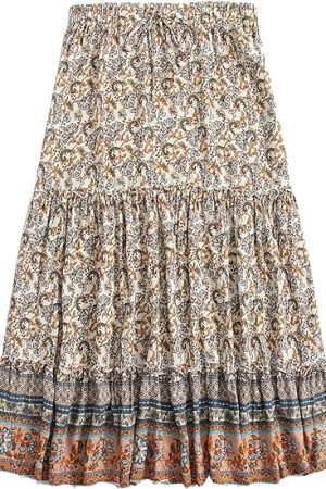 Vintage Floral Print Tie Waist A Line Maxi Skirts
