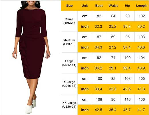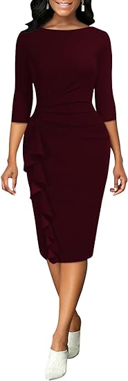 - Material: New fabric,Soft and skin-friendly. You will love it.Women’s retro 50s vintage elegant ruffle bodycon business midi dresses.It fits like a glove, so perfectly