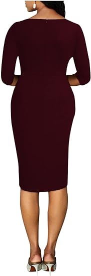 - Features: 50s vintage,side ruffle,ruched,bodycon,midi dress.Pairing with a handbag, heels, your favorite earrings and necklace for a elegant and charming look