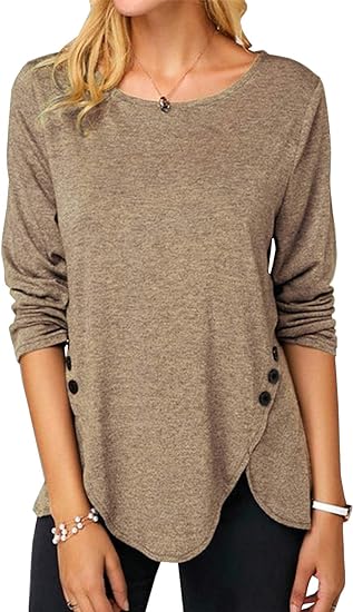 Product details Fabric Type 60% Polyester, 35% Rayon, 5% Spandex Care Instructions Machine Wash, Hand Wash Only Origin Imported About this item Unique Design:Long Sleeve Casual Tunic Shirt,This asymmetrical hem tunic is incredibly soft and comfortable! It classy and fun.The buttons on the side are non-functioning, but attractive. Match:It's Easy to Pair with Jeans,Leggings,Shorts,Pants and High Boots,Perfect to Wear with a Pretty Necklace for a Fashion Look,Which Makes You Looks More Stylish and Elegant. Suitable for Casual Daily/ Travel/ Home/ Vacation/ Shopping/ Street/ Party/ Outdoor/ Club to Wear.The Best Gifts for Women. Wash Care: Machine Washable In Gentle, Recommend Hand Wash In Cold Water, Line Dry, Do Not Bleach.